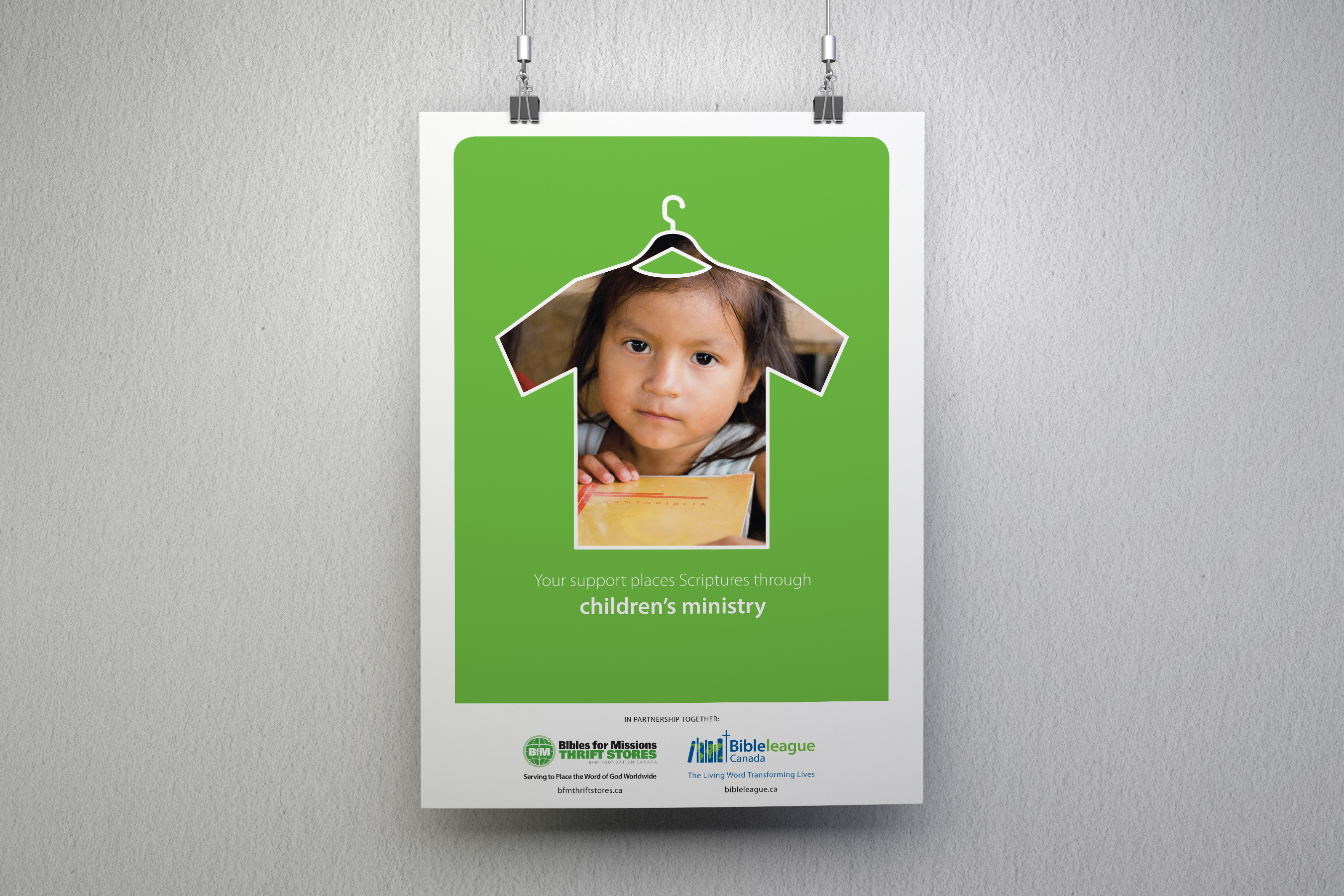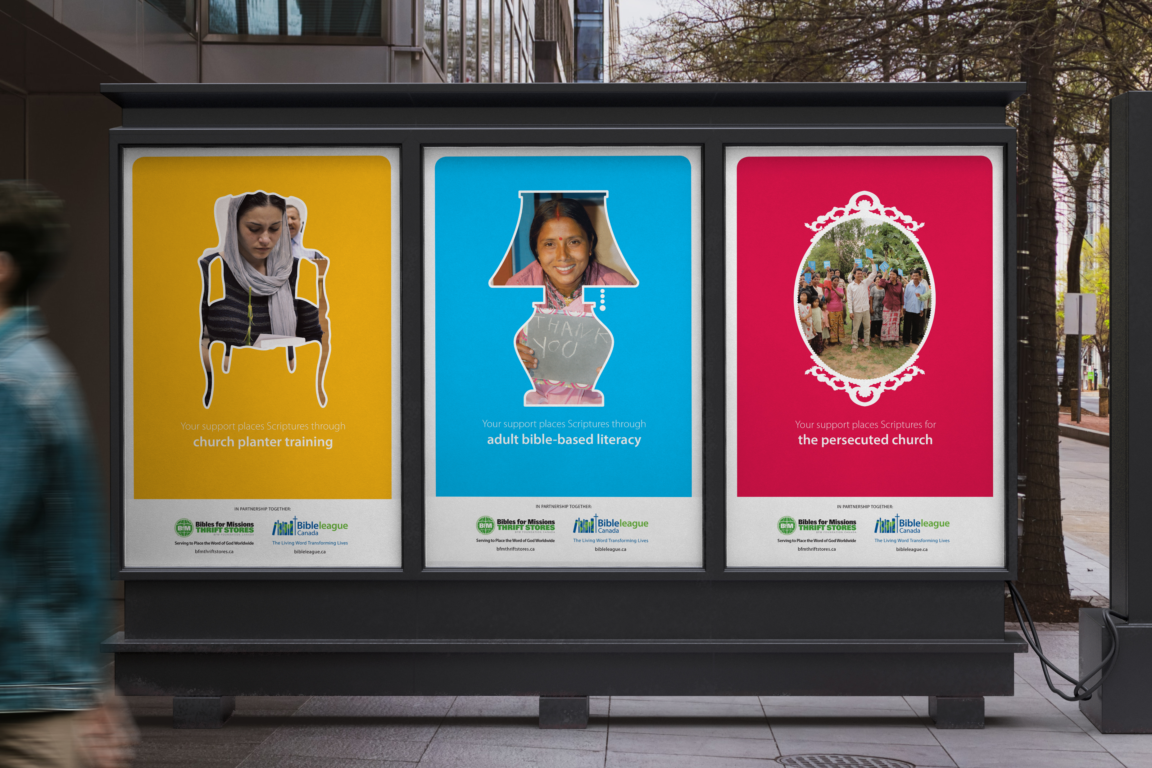Every purchase made at a Bibles for Missions Thrift Store goes to support their charitable initiatives worldwide. To promote their cause, I made posters using the organization’s photos and bright, bold colours that gave the consumer a glimpse into how their purchase at the thrift store was directly making a difference in someone’s life overseas.