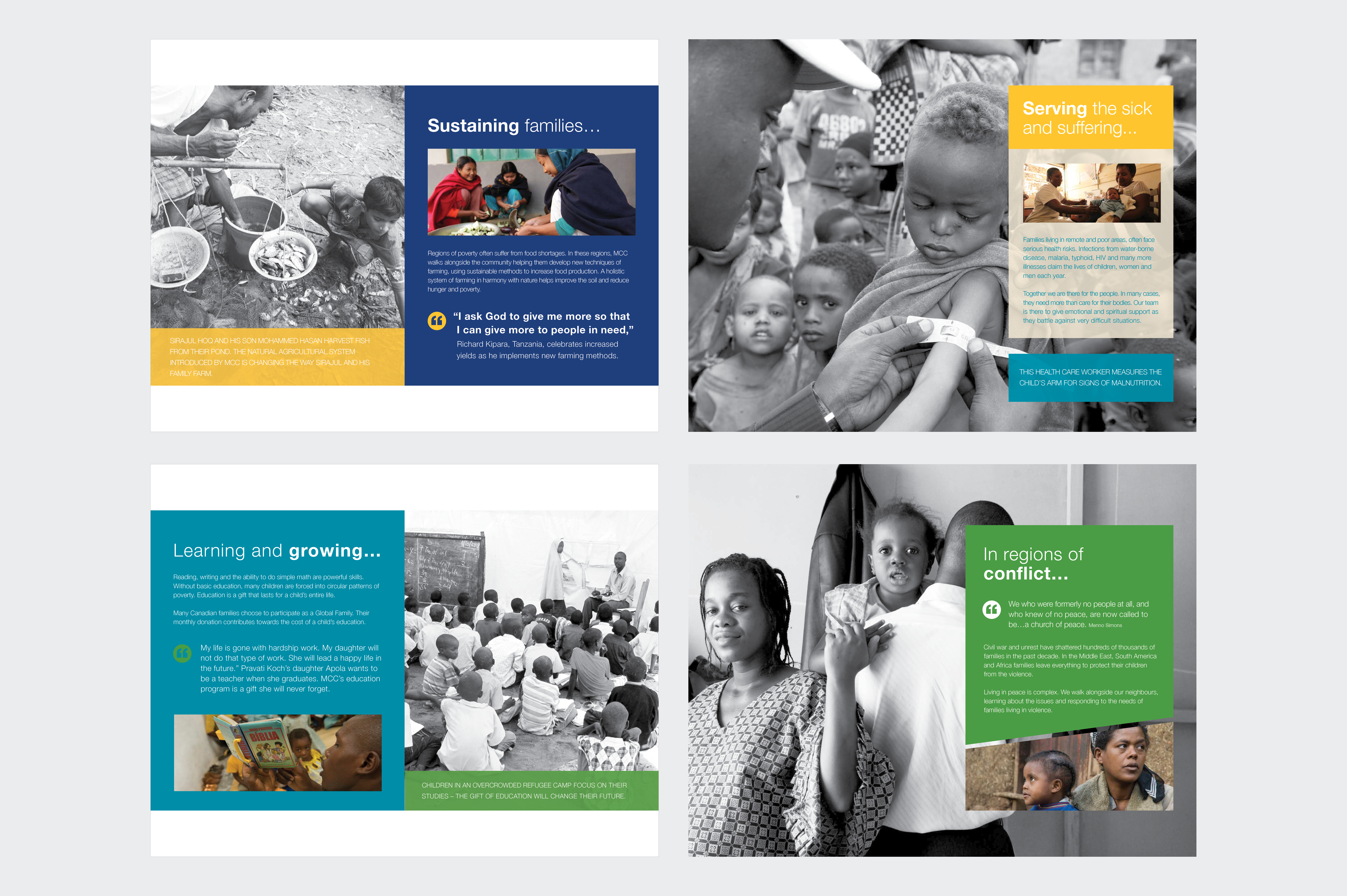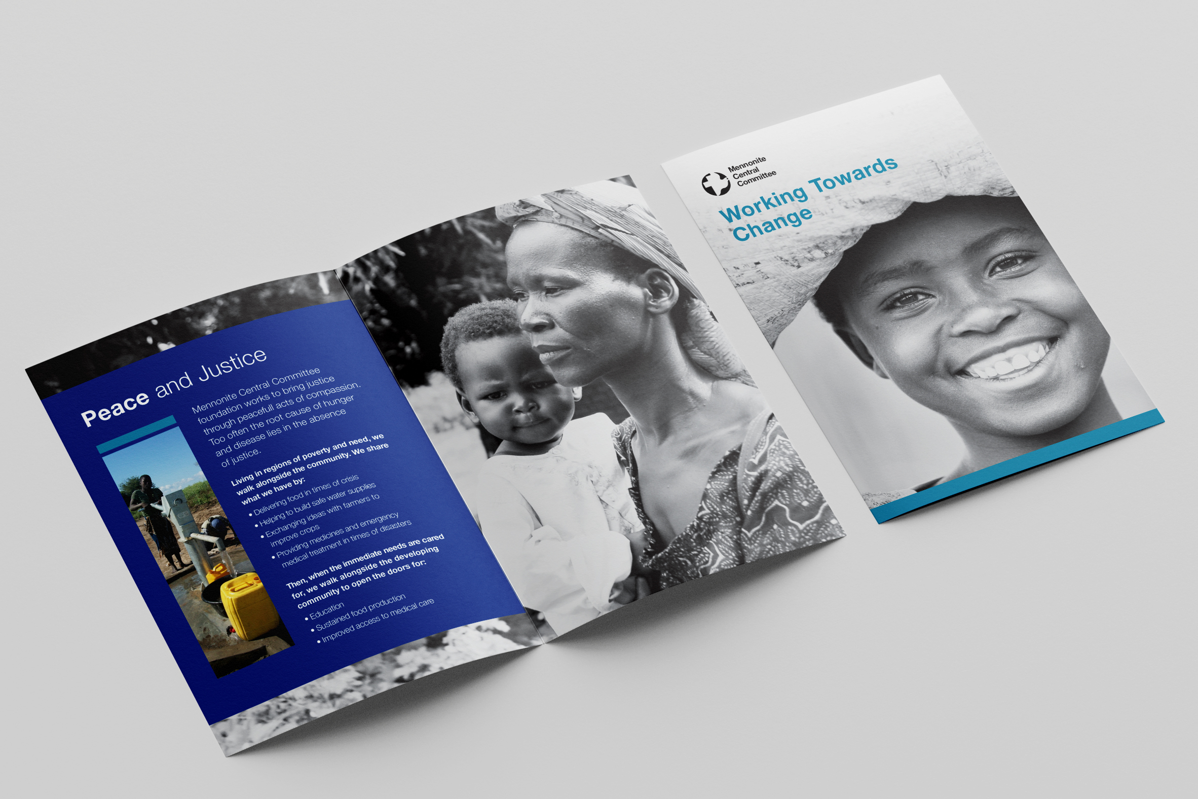 This brochure was designed using the organization’s striking images to spread awareness of all the work Mennonite Central Committee (MCC) is doing overseas. This saddle-stitched brochure was sized to be mailed out in a 6″x9″ envelope if needed as well as handed out at trade shows and conferences.